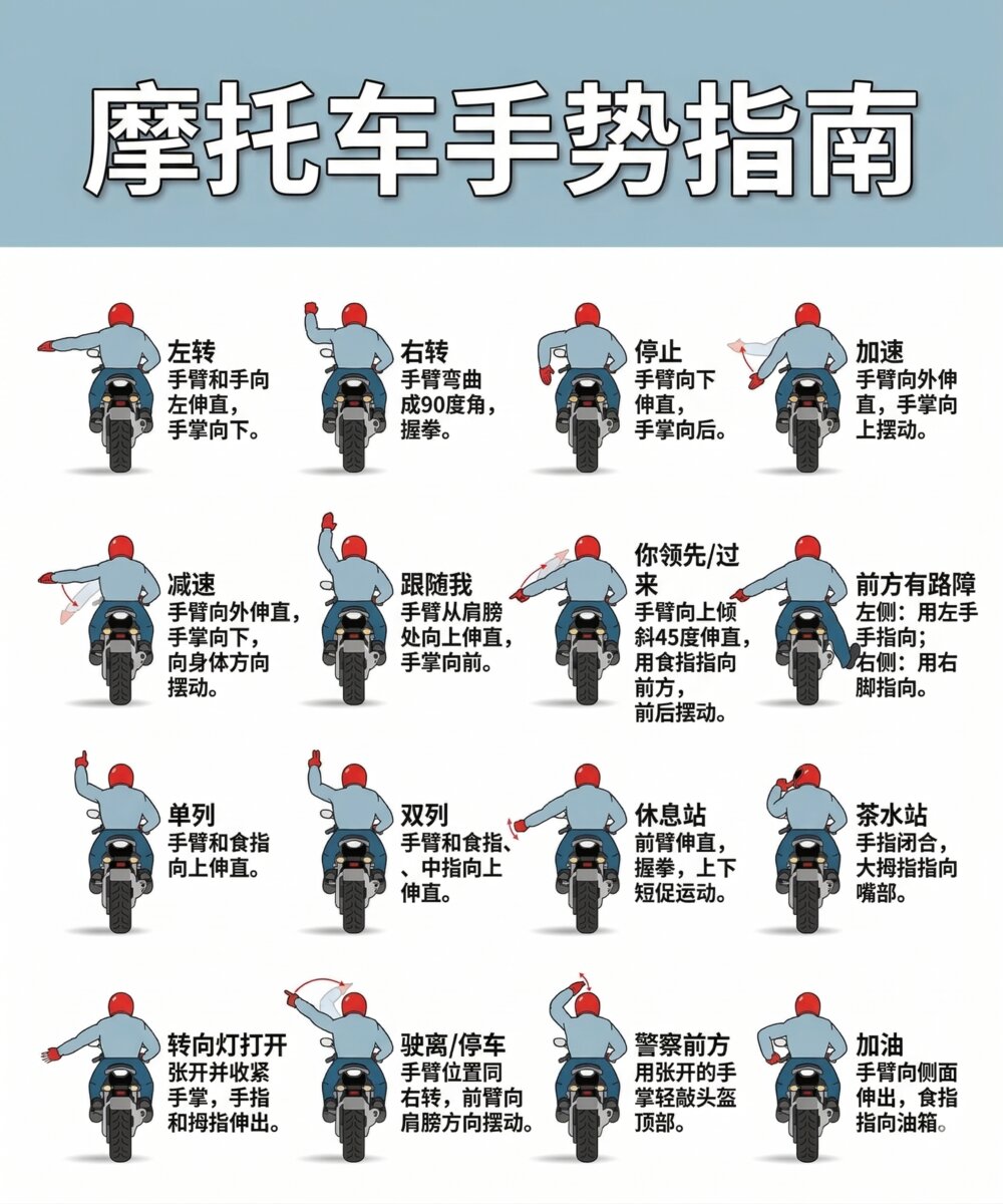 日本でバイク免許(普通二輪/大型二輪)を取得する過程で、技能試験(路考)で主に評価されるのは灯火信号の使用と車両のコントロールですが、実際の道路走行や将来の**ツーリング(ツーリング)**では、手信号が生命安全を保証する重要な要素となります。